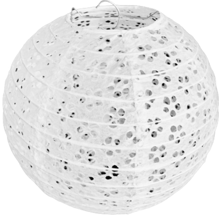 - Bílý perforovaný kulatý lampion stínidlo průměr 20 cm motiv květina