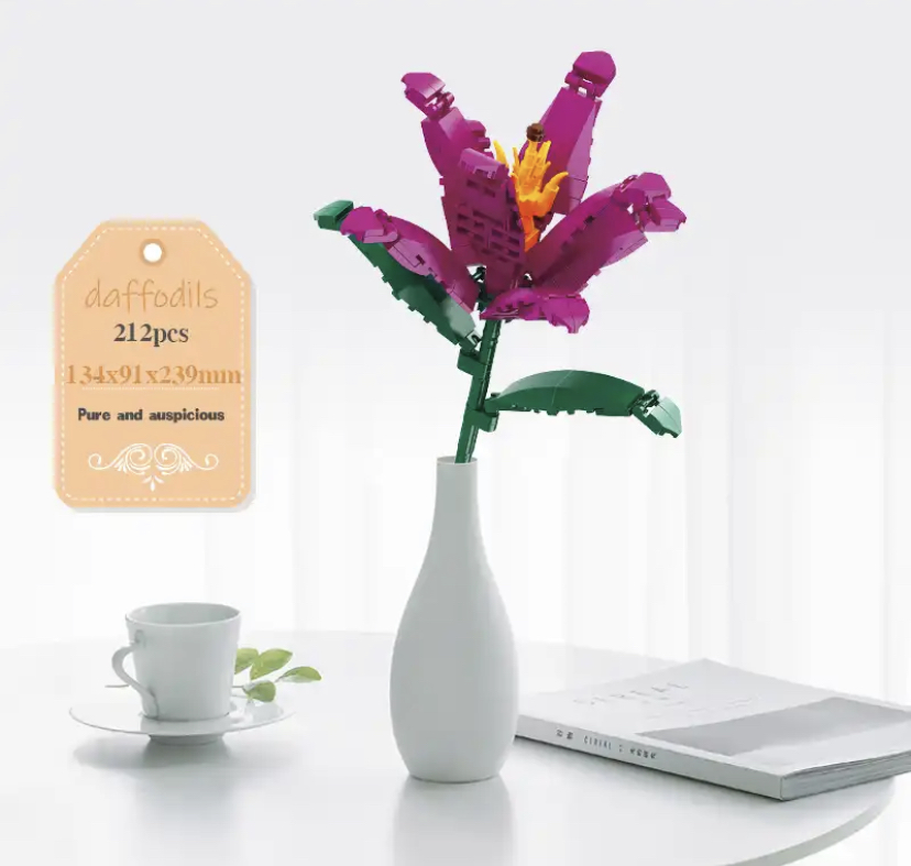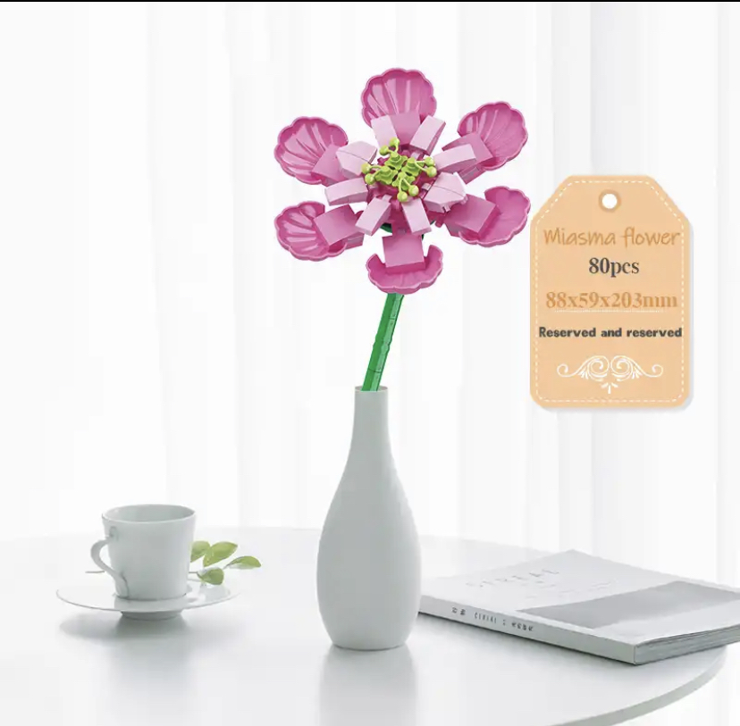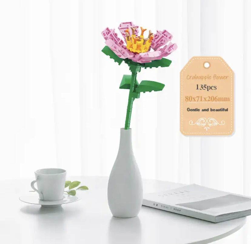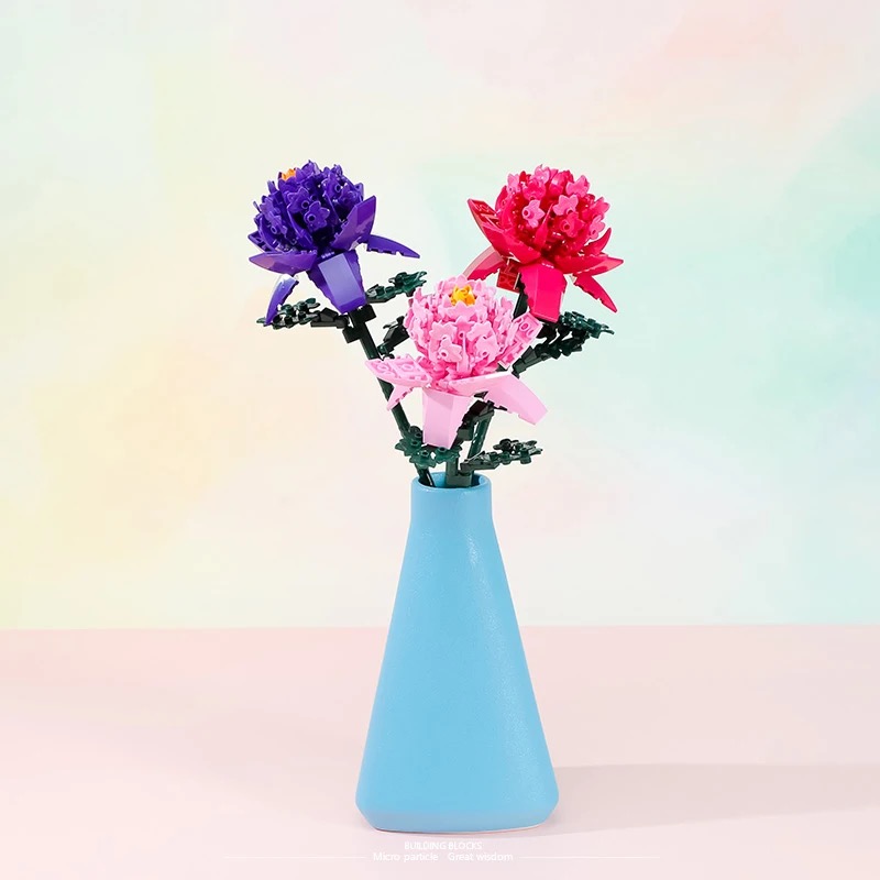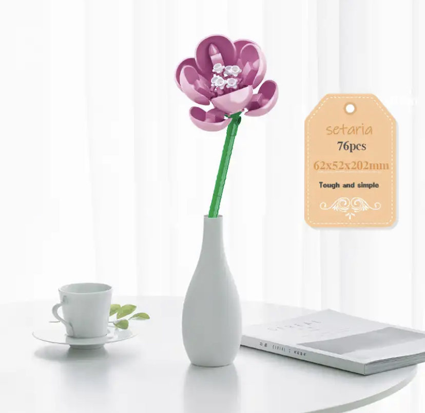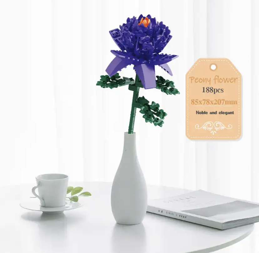 Malá stavebnice z plastových dílků s motivem květiny pivoňky (peony flower).