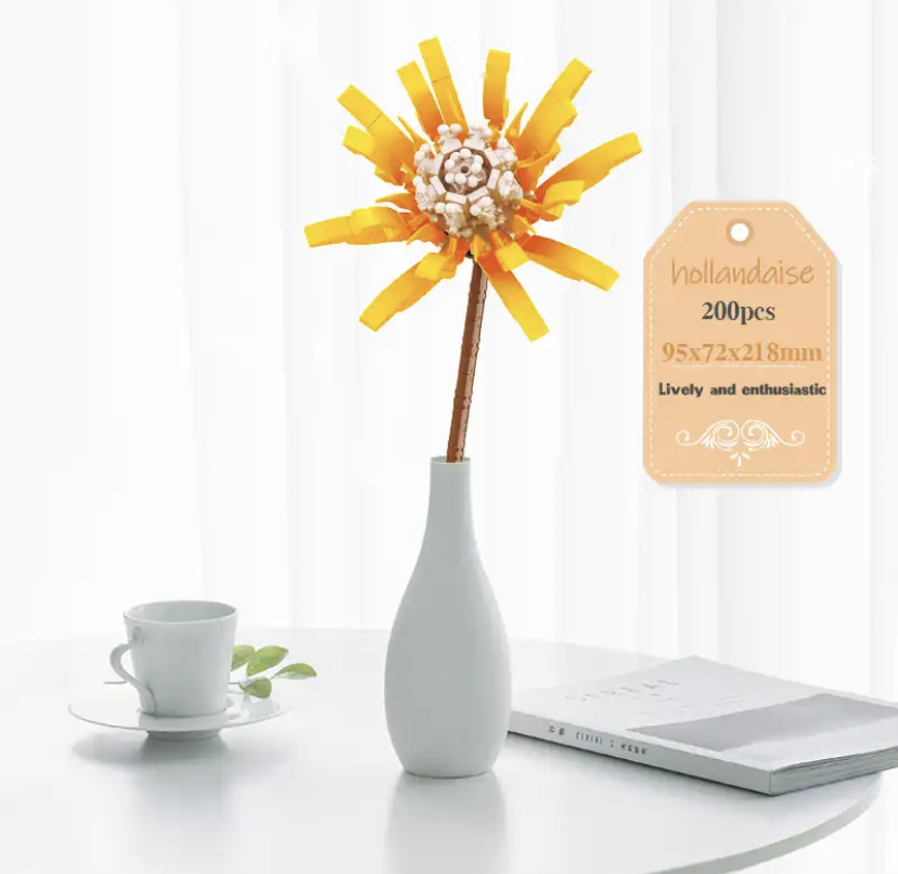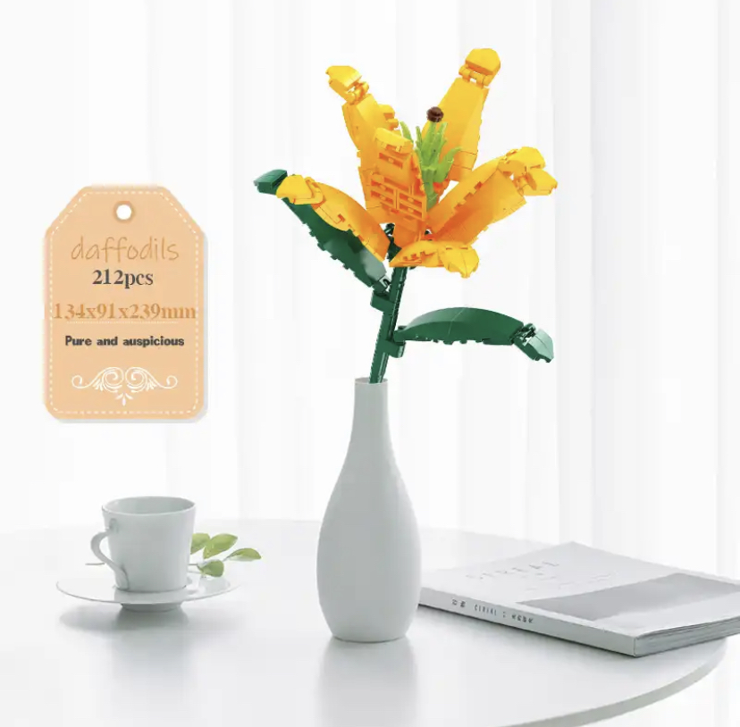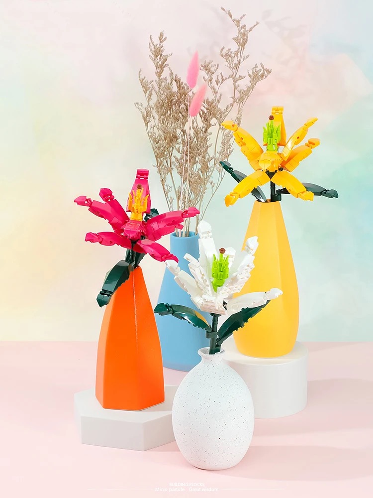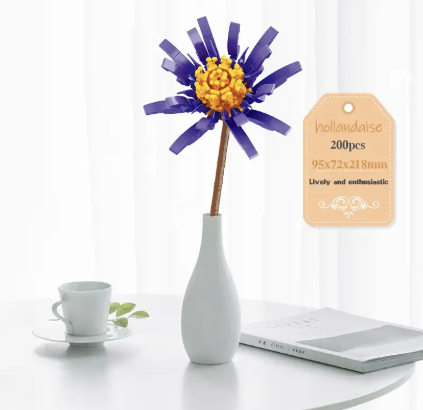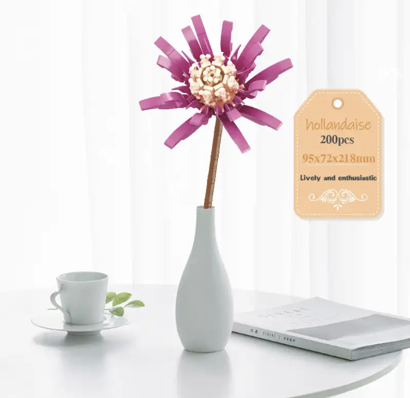 Malá stavebnice z plastových dílků s motivem květiny pivoňky (peony flower).
