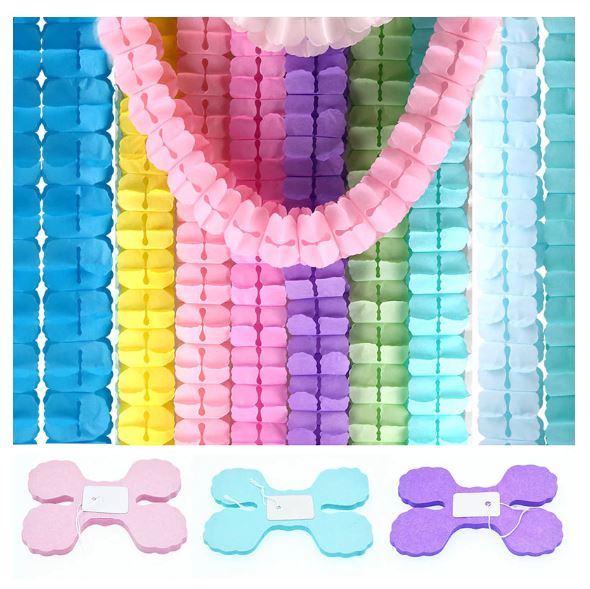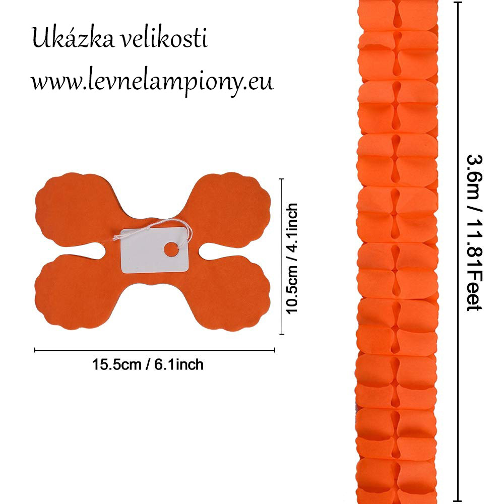 Jednobarevný papírový řetěz (girlanda) ve tvaru 4 lístků o délce 3,6 metru (10,5 cm x 15,5 cm ve složeném stavu).